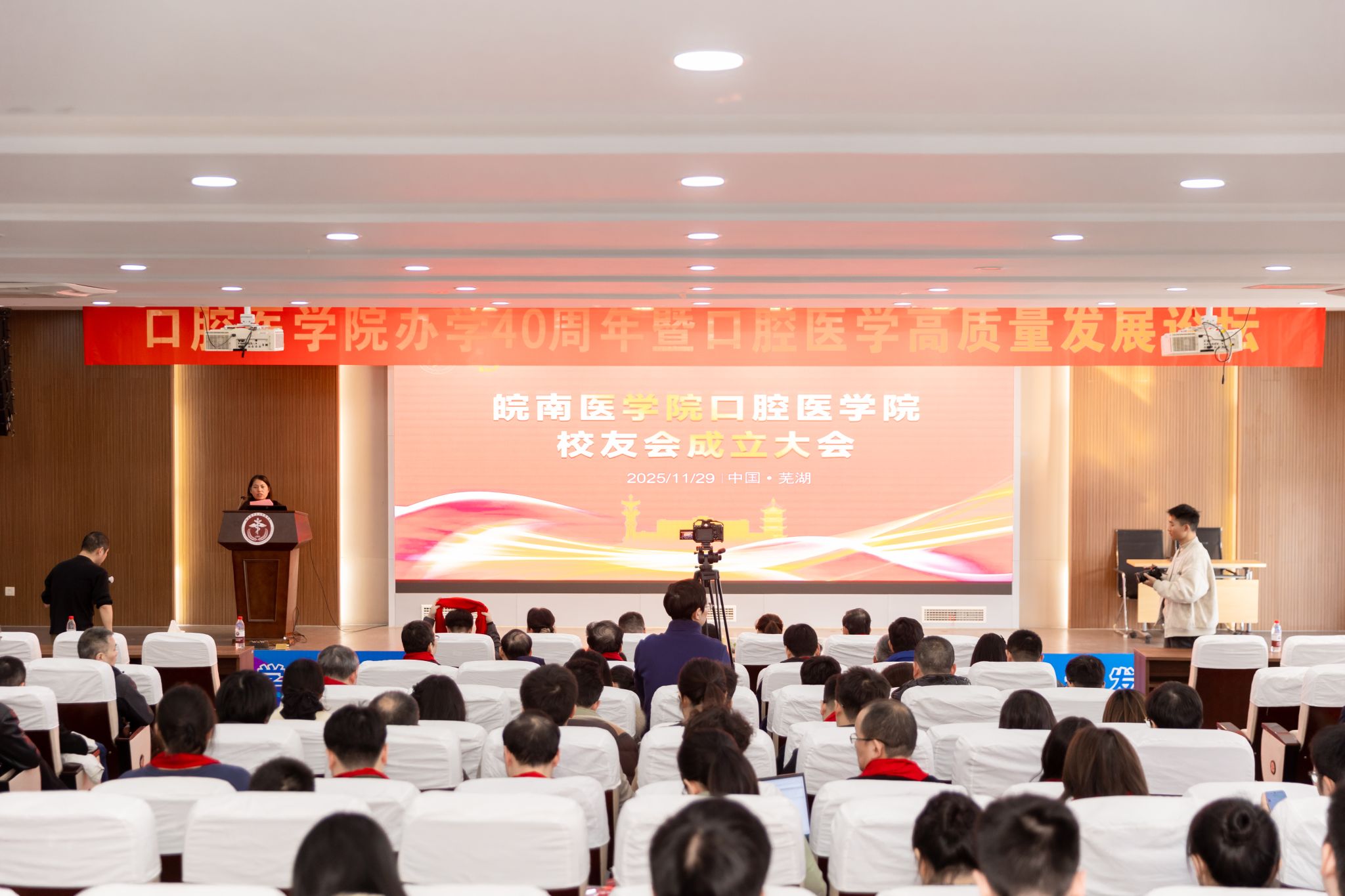11月29日,皖南医学院口腔医学院校友会成立大会举行。校党委副书记、院长姚应水出席会议,校友工作办公室负责人、口腔医学院相关负责人及来自全国各地的口腔医学校友代表参加会议。